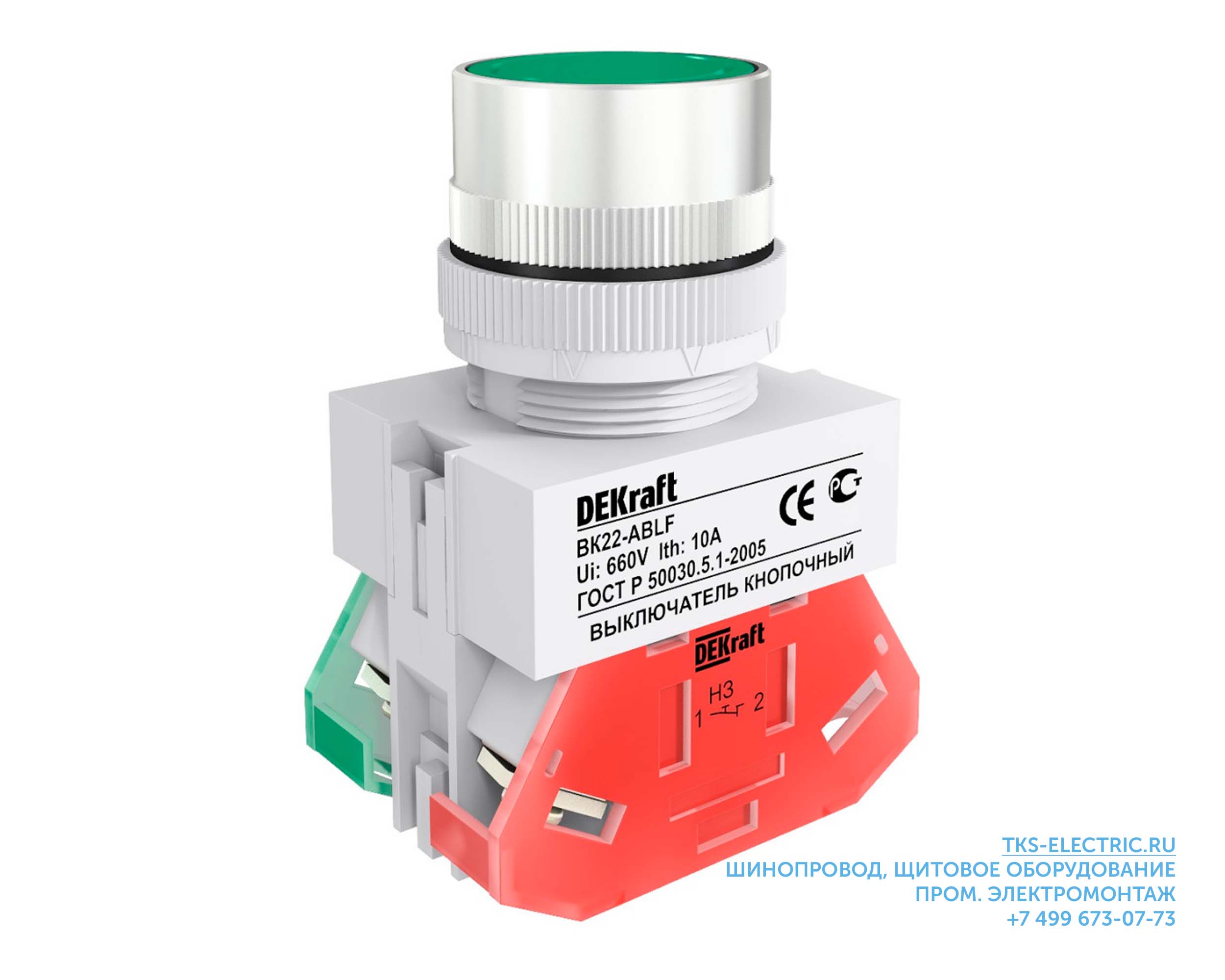 Dekraft Выключатель кноп. ABLF D22 зеленый 220В ВK-22