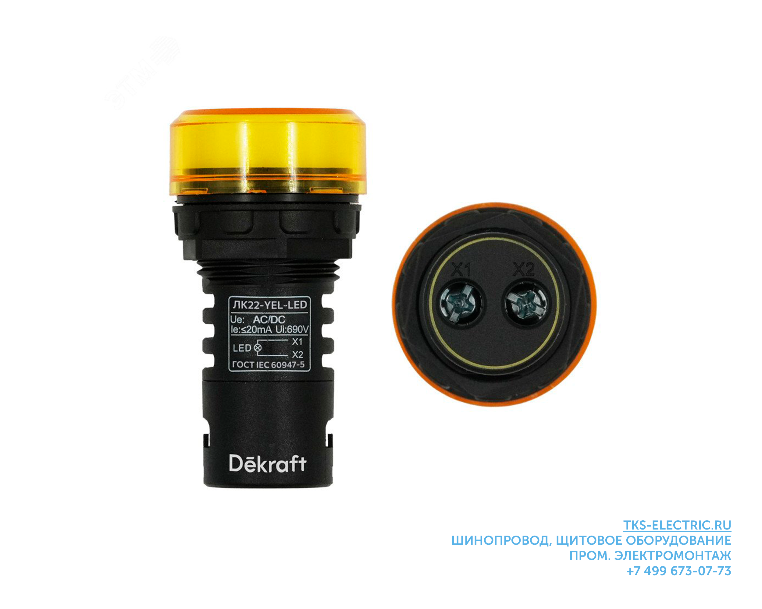 Лампа ADDS d22мм жёл.LED 22 24В AC/DC 25067DEK Dekraft