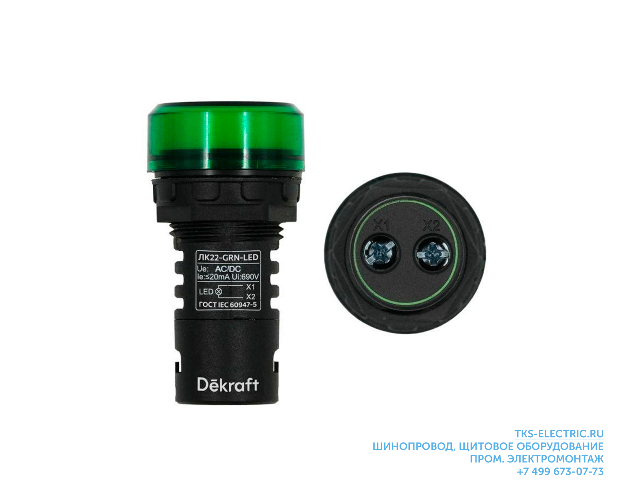 Лампа сигнальная ЛК-22 (зелёная) 24В 22мм/ 25065DEK-ЛК22-ADDS-24